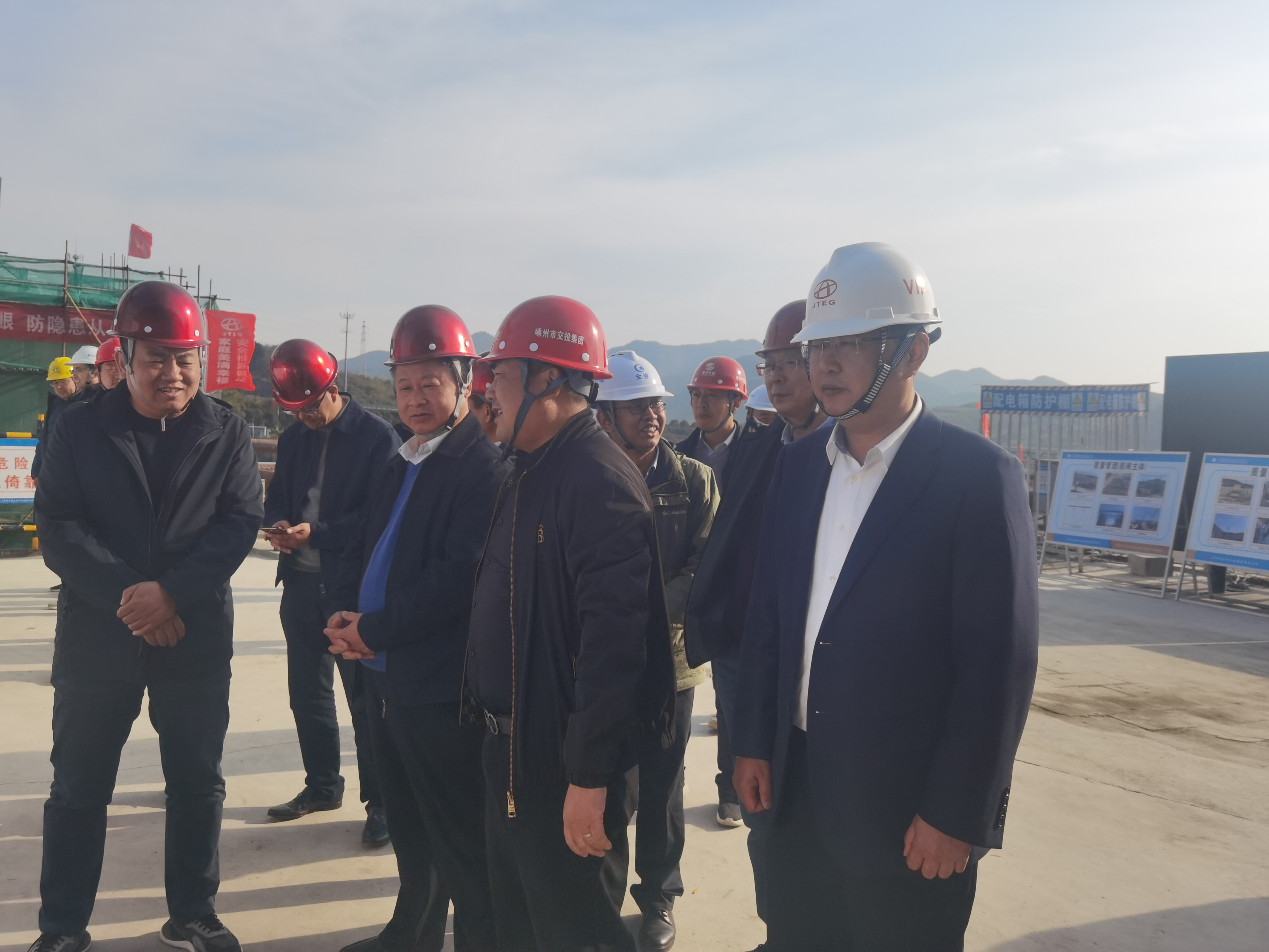 12月6日,浙江省交通運(yùn)輸廳一級(jí)巡視員夏炳榮來(lái)到江蘇交工承建的曹娥江清風(fēng)船閘,調(diào)研項(xiàng)目建設(shè)情況。浙江省港航管理中心副主任丁武雄,紹興市交通運(yùn)輸局二級(jí)調(diào)研員許國(guó)榮、港航處處長(zhǎng)韓鳳雷,嵊州市交投集團(tuán)黨委副書記、總經(jīng)理蔣化榮,江蘇交工董事長(zhǎng)王紀(jì)源等陪同。
