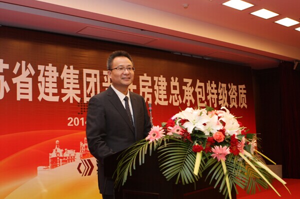 8月15下午,江蘇省建集團(tuán)晉升房建總承包特級(jí)資質(zhì)慶祝大會(huì)在南京湯山御豪溫泉酒店隆重舉行。江蘇省住建廳副廳長(zhǎng)、省建管局局長(zhǎng)徐學(xué)軍,省住建廳副巡視員紀(jì)迅,省住建廳有關(guān)處室負(fù)責(zé)人賀志良、曹達(dá)雙、王懷、李波、李震,有關(guān)金融機(jī)構(gòu)負(fù)責(zé)人,部分公司老領(lǐng)導(dǎo),集團(tuán)合作伙伴代表,以及集團(tuán)機(jī)關(guān)中層及以上干部、各基層單位有關(guān)負(fù)責(zé)人150人出席大會(huì)。集團(tuán)公司總裁仇天青主持會(huì)議。