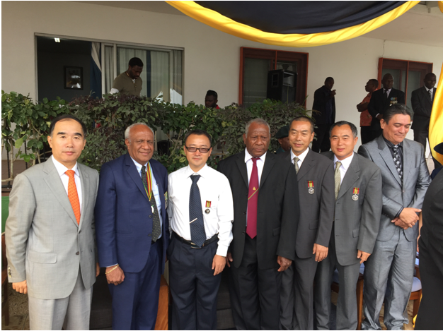 朗斯代爾總統(tǒng)向袁剛頒發(fā)“瓦努阿圖獨(dú)立勛章”