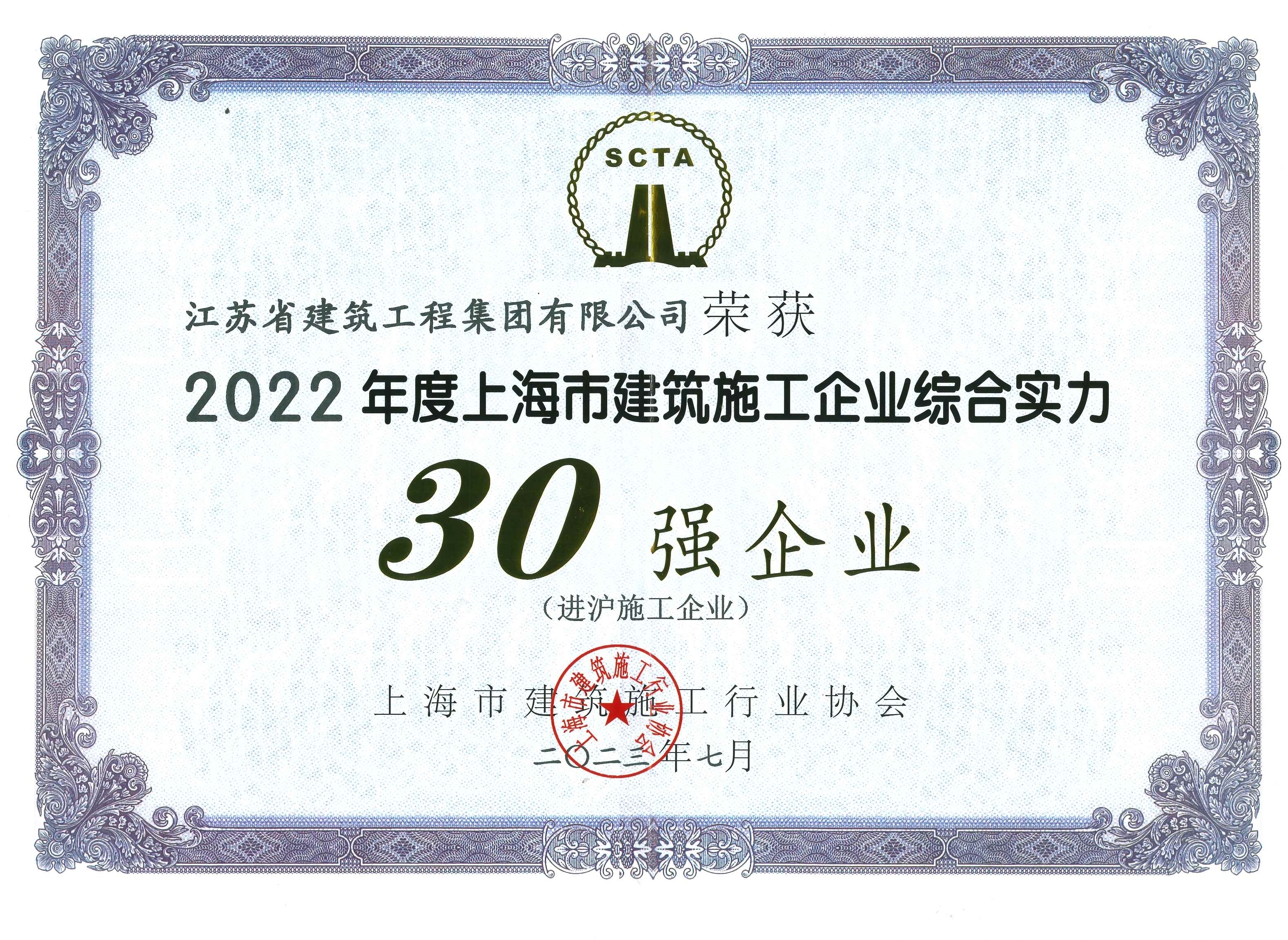 上海市建筑施工行業(yè)協(xié)會近日發(fā)布2022年度上海市建筑施工企業(yè)綜合實力數(shù)據(jù)統(tǒng)計結(jié)果,集團再次入選“上海市建筑施工企業(yè)綜合實力30強企業(yè)(進滬施工企業(yè))”。